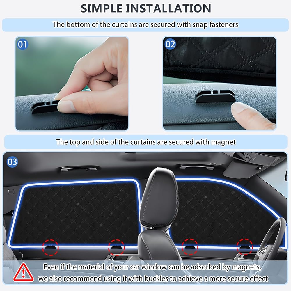 Enhanced Privacy Protection: Keep your valuables out of sight with our car blackout window shades, providing peace of mind while parked. Whether you're at the beach or running errands, you can relax knowing your personal space is protected from prying eyes