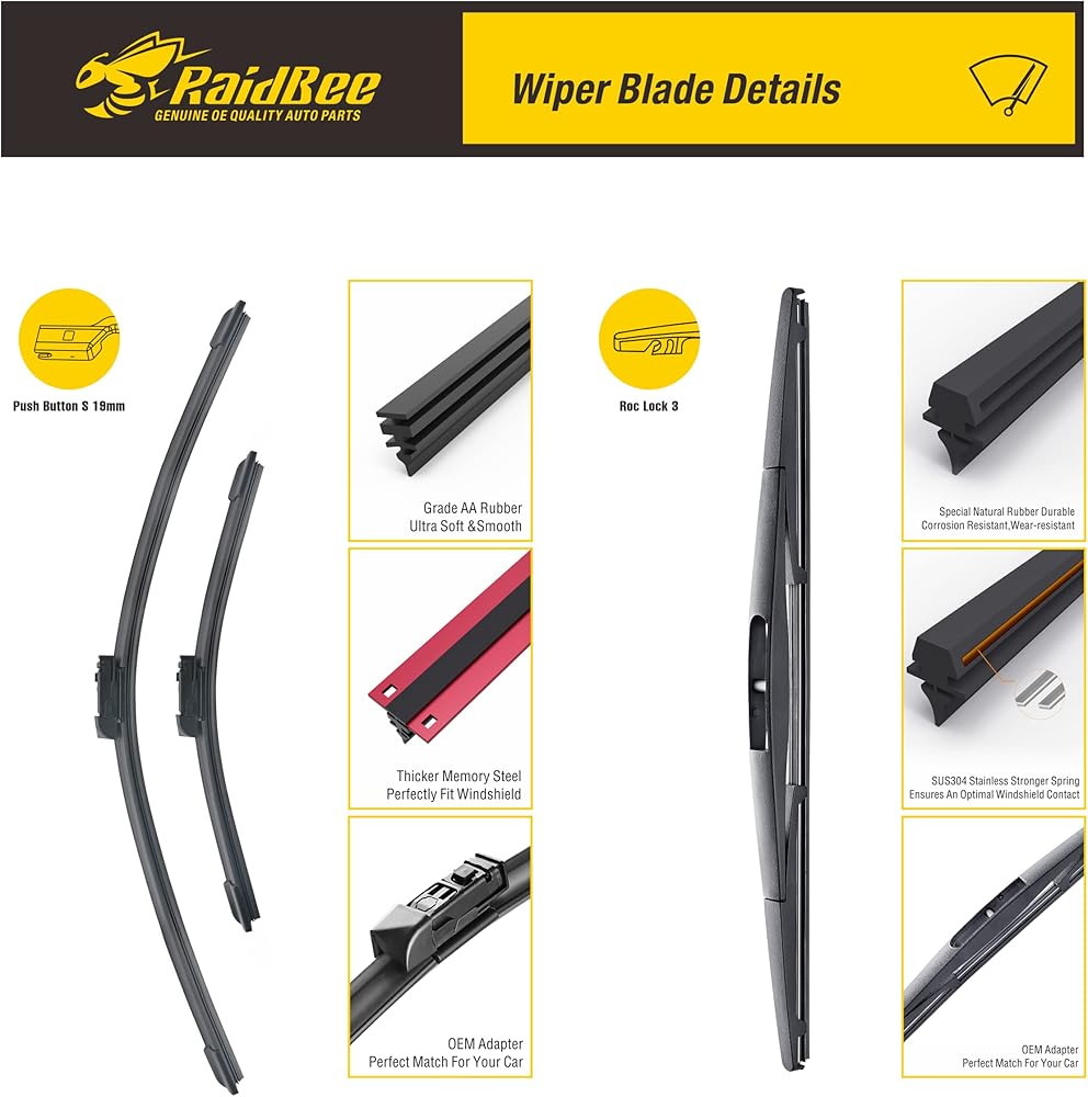 Raidbee® 26"+16" Windshield Wiper Blades with 12" Rear Wiper Blade Replacement Set for Lexus NX200t 2015-2017/NX300 2018 2019 2020 2021/NX300h 2015-2019 2020 2021 – Genuine OEM Quality (Set of 3)