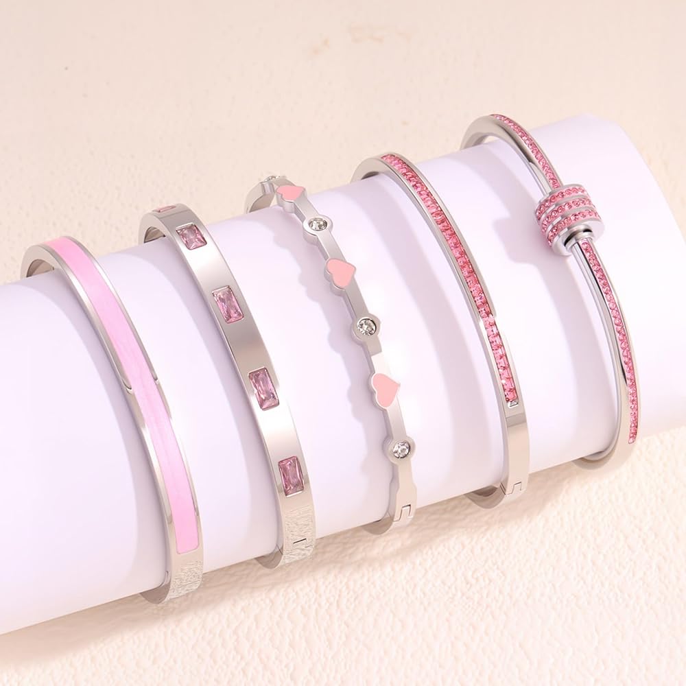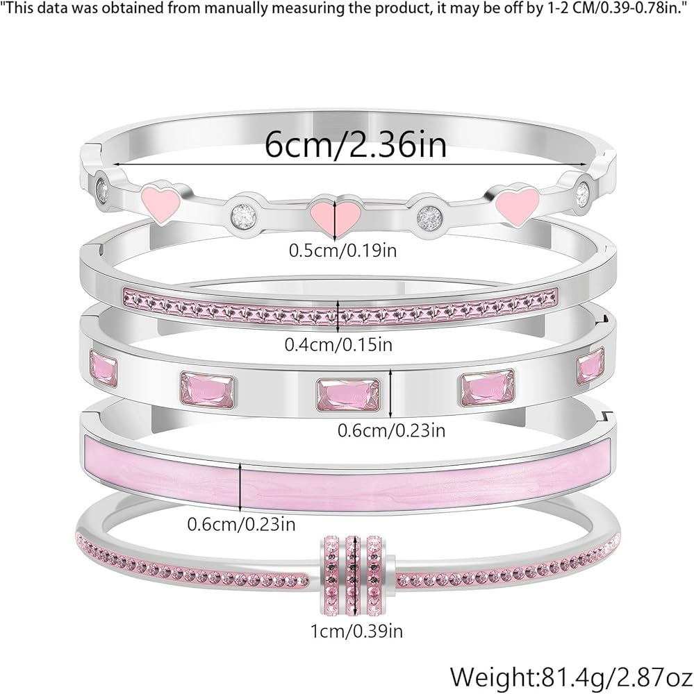 Indulge in the timeless elegance of our women's bangle bracelet set, a collection of 5 meticulously crafted pieces that seamlessly blend style and functionality. The gold bracelets in this set feature an inner circumference of 17cm (6.69 inches) and an inner diameter of approximately 6 cm x 5 cm (2.36 X 1.97 inches), making them suitable for most wrist sizes ranging from 5.7" to 6.7". With an ideal weight balance, they are neither too heavy nor too light, ensuring they are the perfect everyday accessory that effortlessly elevates any outfit, be it casual or formal. For a perfect fit, we recommend measuring your wrist circumference before purchase. Designed with a charming minimalist aesthetic, these bracelets are made from hypoallergenic 316L stainless steel, promising durability and a long lifespan. Their simple yet fashionable design is not only easy on the eyes but also carries a deep meaning, exuding an air of understated luxury and highlighting your unique charm. Wear them individually for a subtle touch of elegance or stack them with other bracelets or watches to create a trendy, layered look that is sure to turn heads. This bracelet set is not just a piece of jewelry; it's a perfect gift for the special women in your life. Whether it's your girlfriend, wife, mother, grandmother, or aunt, these exquisitely crafted bracelets, presented in a beautiful gift box, make for an ideal token of affection. Be it Valentine's Day, birthdays, weddings, engagements, anniversaries, Thanksgiving, Christmas, or Mother's Day, these delicate yet eye-catching bracelets will add a touch of glamour and sentiment to every precious occasion. At our store, we deeply value the shopping experience of each and every customer. If you have any questions or concerns about our products, please don't hesitate to reach out to us at any time. We are committed to providing prompt and effective solutions to ensure your complete satisfaction. Elevate your style and make a statement with our women's bangle bracelet set today!
