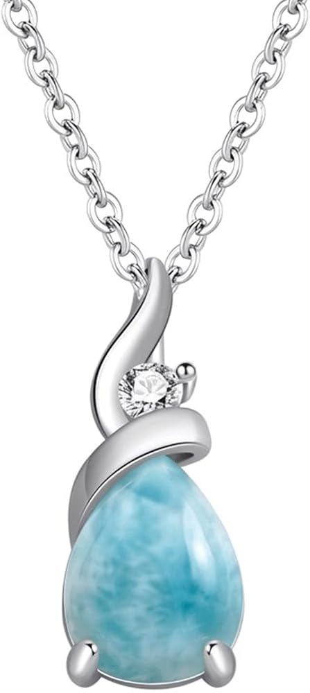 【Natural Larimar Necklace】:This natural larimar pendant necklace, with its gorgeous blue color, is definitely eye-catching and will add a trendy touch to your daily or formal attire! Made from unique and high-quality Dominican natural larimar, it is considered a healing gemstone that can emit positive energy and healing power.
