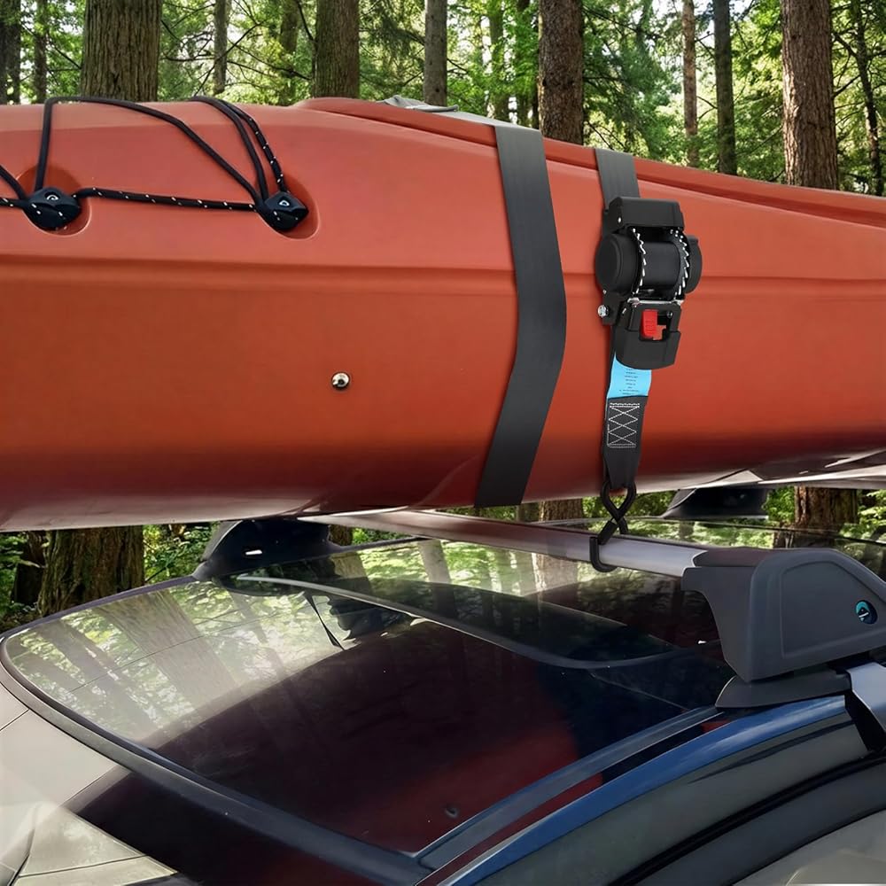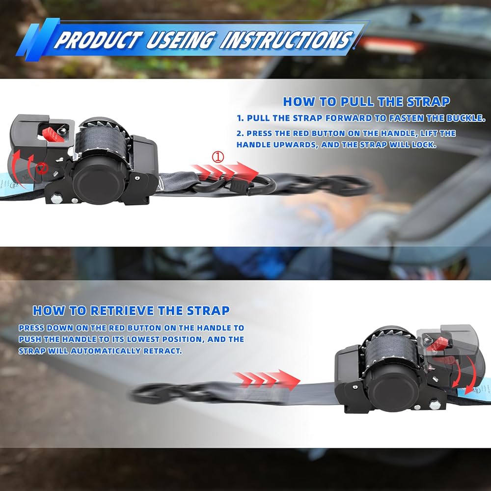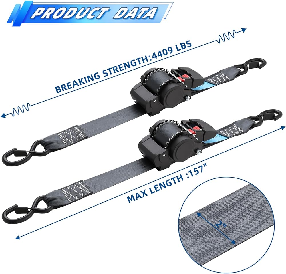 ANLU LOAD Retractable Ratchet Straps (2in x 6ft),Cargo Strap Tie Downs for Trunk, Garage Motorcycles, Atvs,Trailers