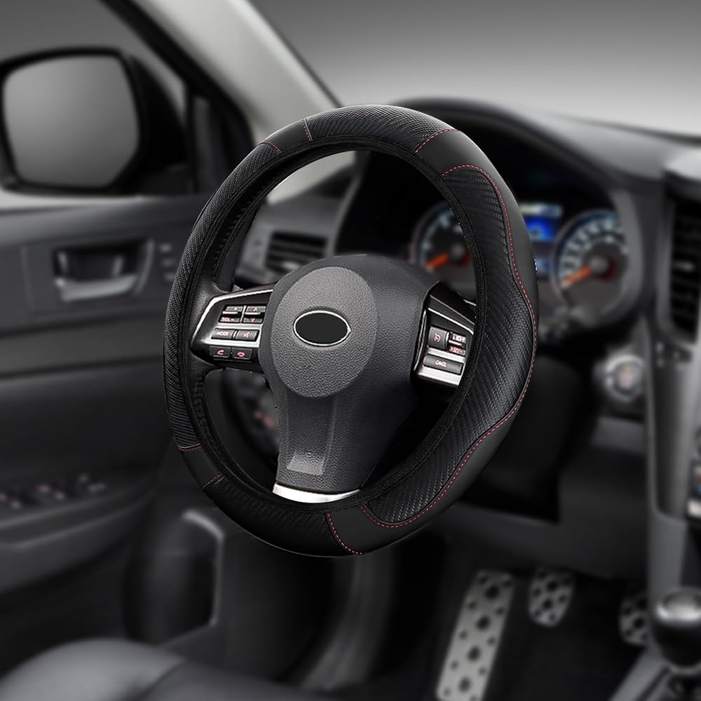 Car Steering Wheel Cover, Steering Wheel Protector, 15 inch Durable Leather Cover with Anti-Slip Lining, Universal Carbon Fiber Microfiber Leather Car Accessories for Most Cars (Black)