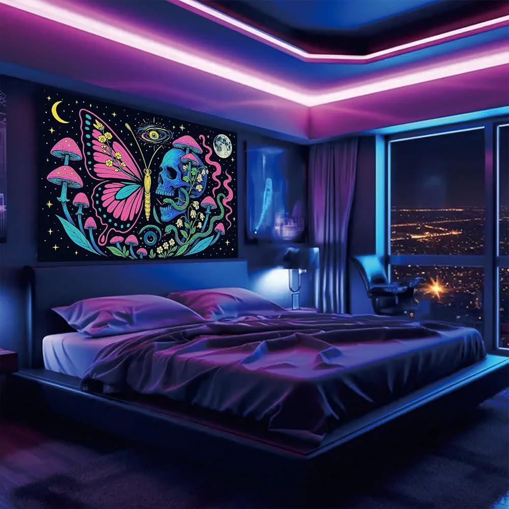 Soft Lightweight Fabric:Made from durable polyester this glowing tapestry is foldable washable and easy to hang making it perfect for aesthetic and spiritual room decor.