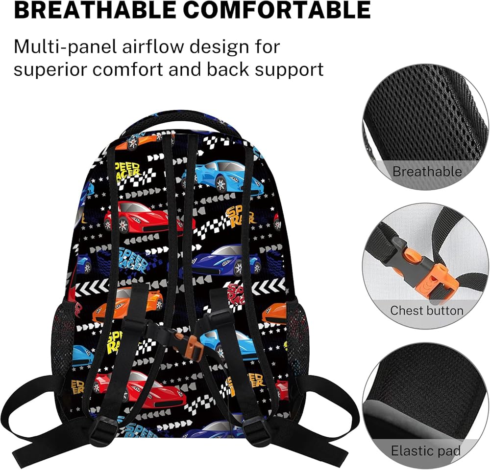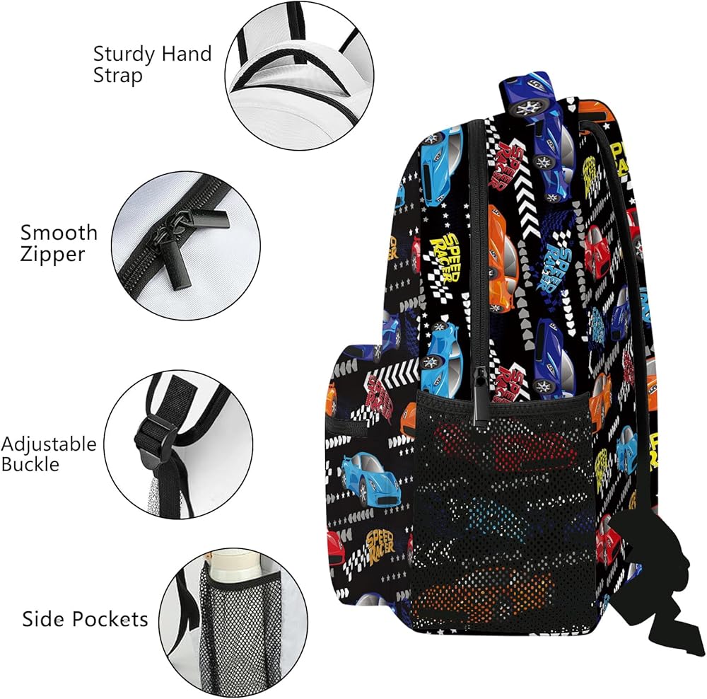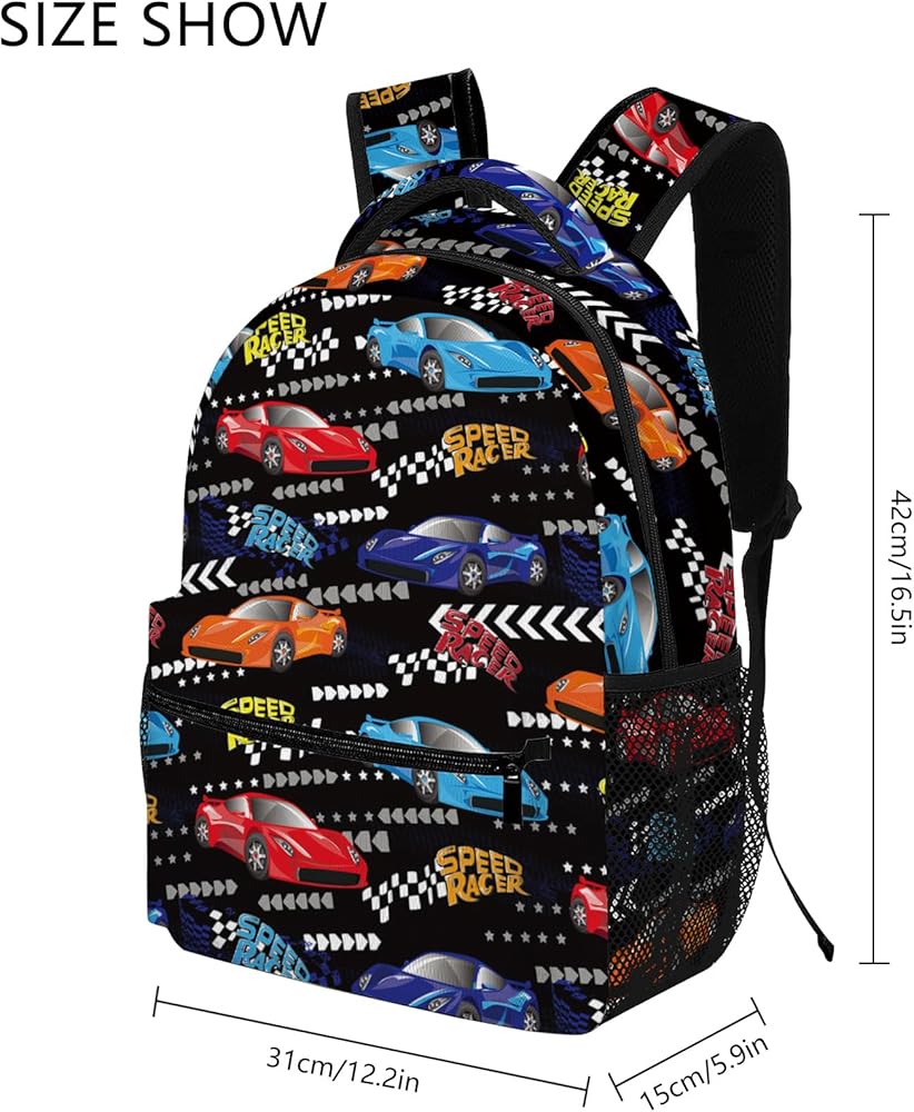 Kids Race Car Backpack, Colorful Sports Car Speed Racer Bookbag for Boys Kids, Cool Racing School Backpacks for Kindergarten Elementary Students, Casual Camping Picnic Travel Daypack