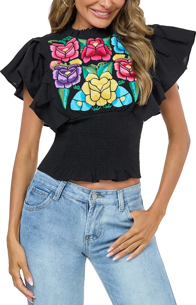 Versatile styling: This cute peasant blouses for women can be paired with shorts, skinny jeans, skirts, high waist a line skirt, straight jeans, wide legging pants, high heels, earring, necklace and more for a feminine bohemian look. This womens summer tops can be used as cute tops for women, womens business casual tops, boho tops for women, ruffle top, crop tops for women going out, floral blouses for women, cute shirts for women, mexican shirts for women.
