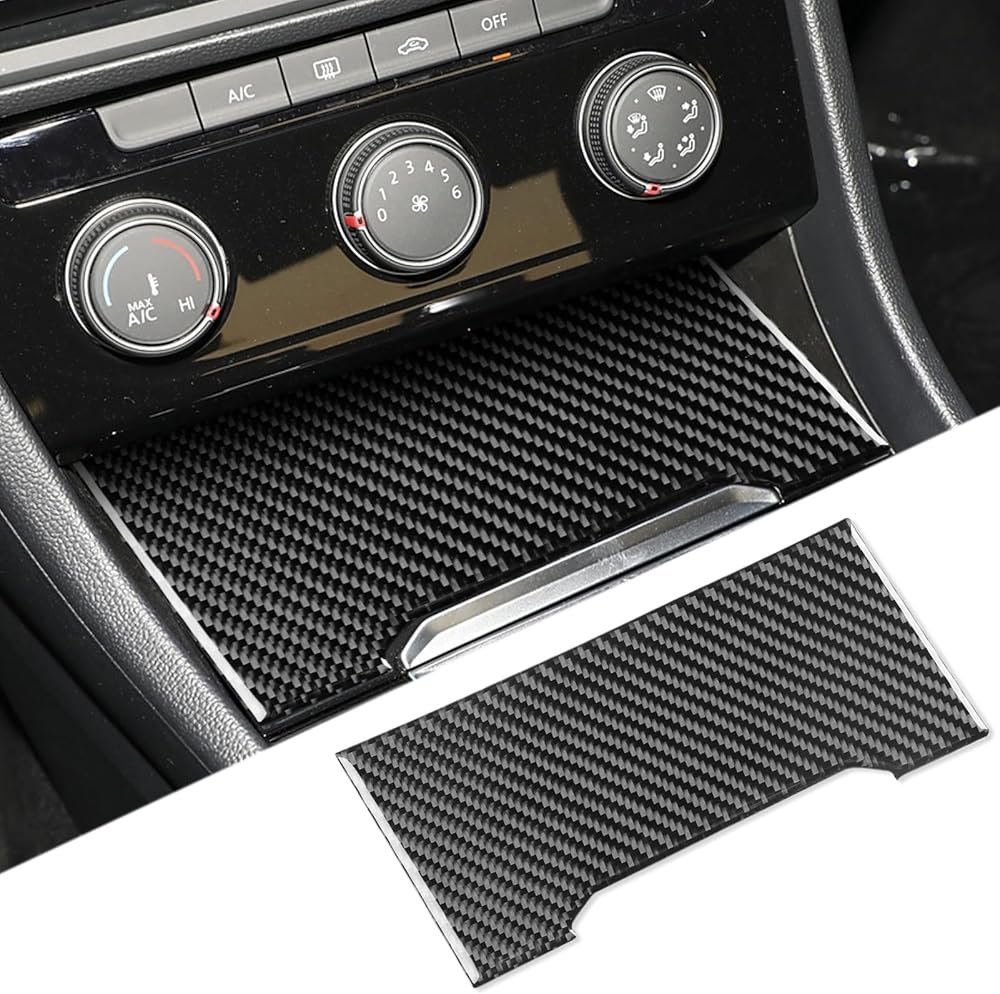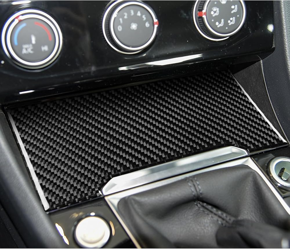 Car Trim Decals Center Control Storage Box Organizer Panel Interior Real Carbon Fiber Compatible with VW Volkswagen Jetta MK7 2019 2020 2021 2022 2023 Accessories