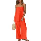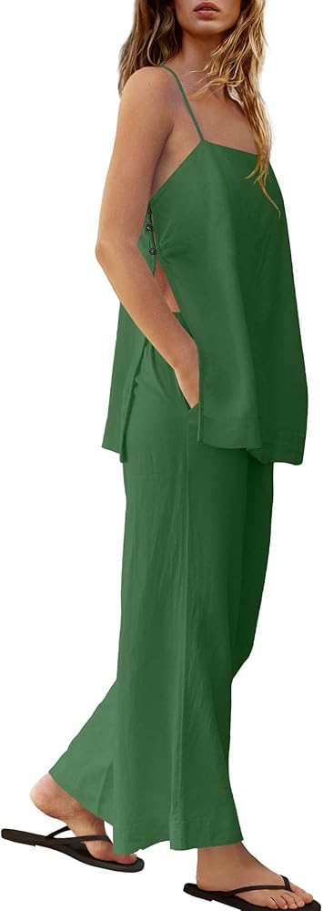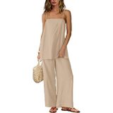 Features: Two piece vacation sets for women featured with off spagetti sleeveless cami tops and wide leg pants, casual and loose fit. Travel outfits for women 2 piece sets shows off your classy and chic, it's a must-have addition to your casual wardrobe