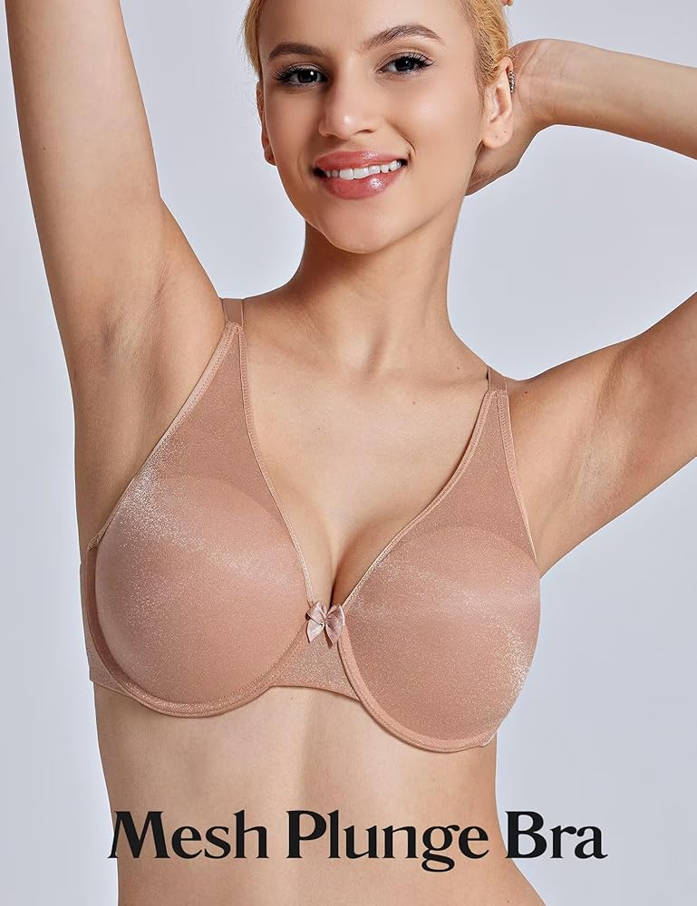 Women's Mesh Plunge Bra: Flaunt a stylish look with our Glitter Mesh Bra. Its elegant glitter mesh, paired with a cute center bow, boosts your feminine charm. Ideal for daily and special events.