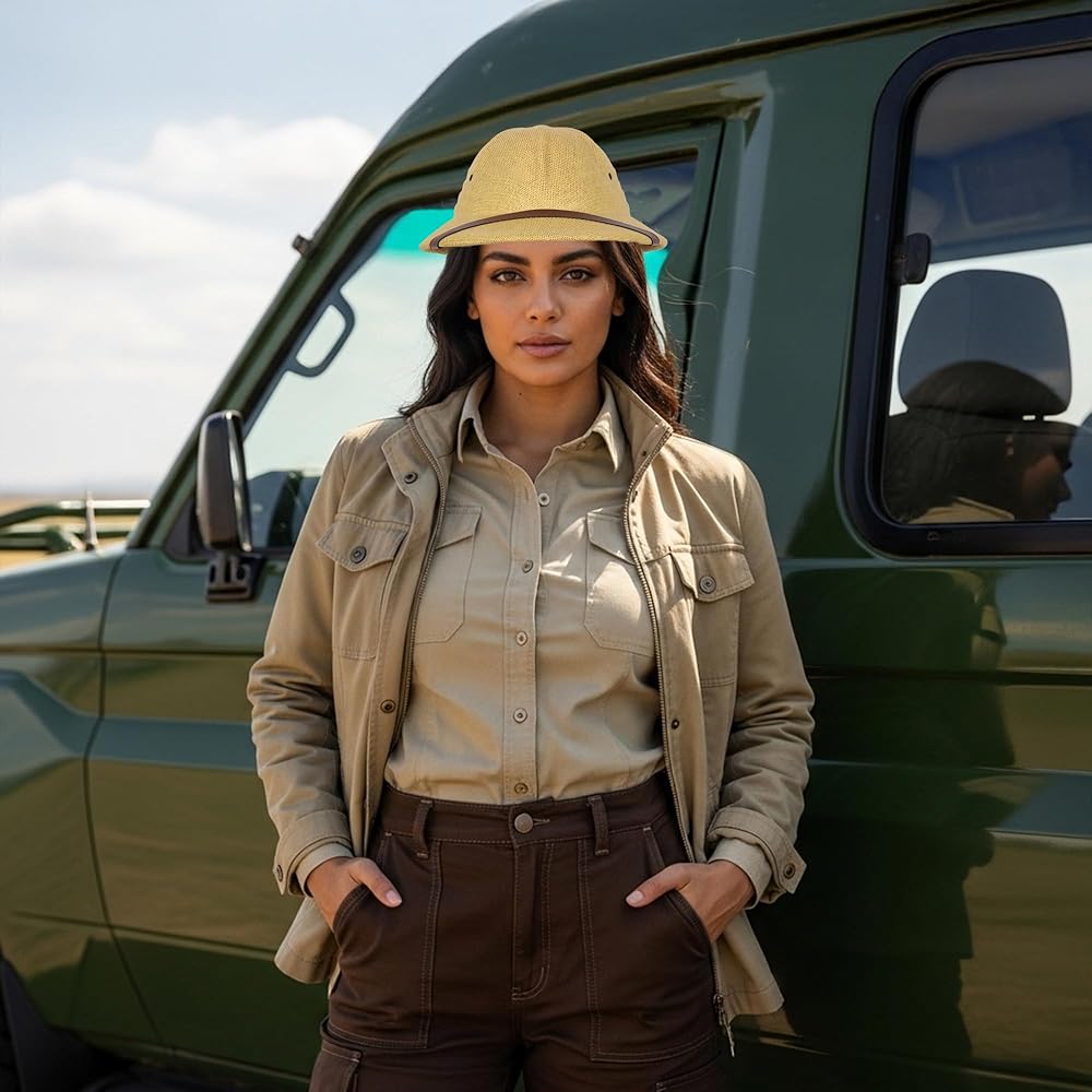 CLASSIC DESIGN: Authentic pith helmet style hat perfect for safari, explorer, or colonial costume themes with its distinctive dome shape and wide brim
