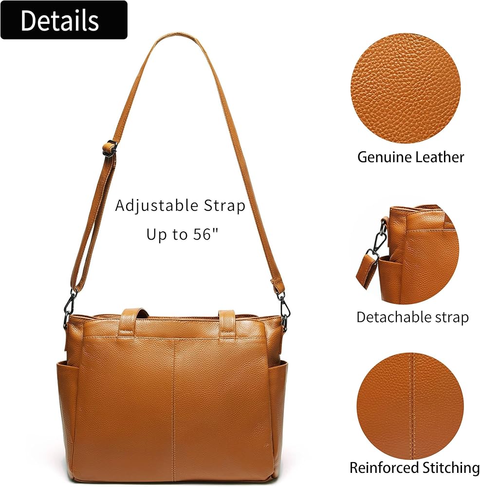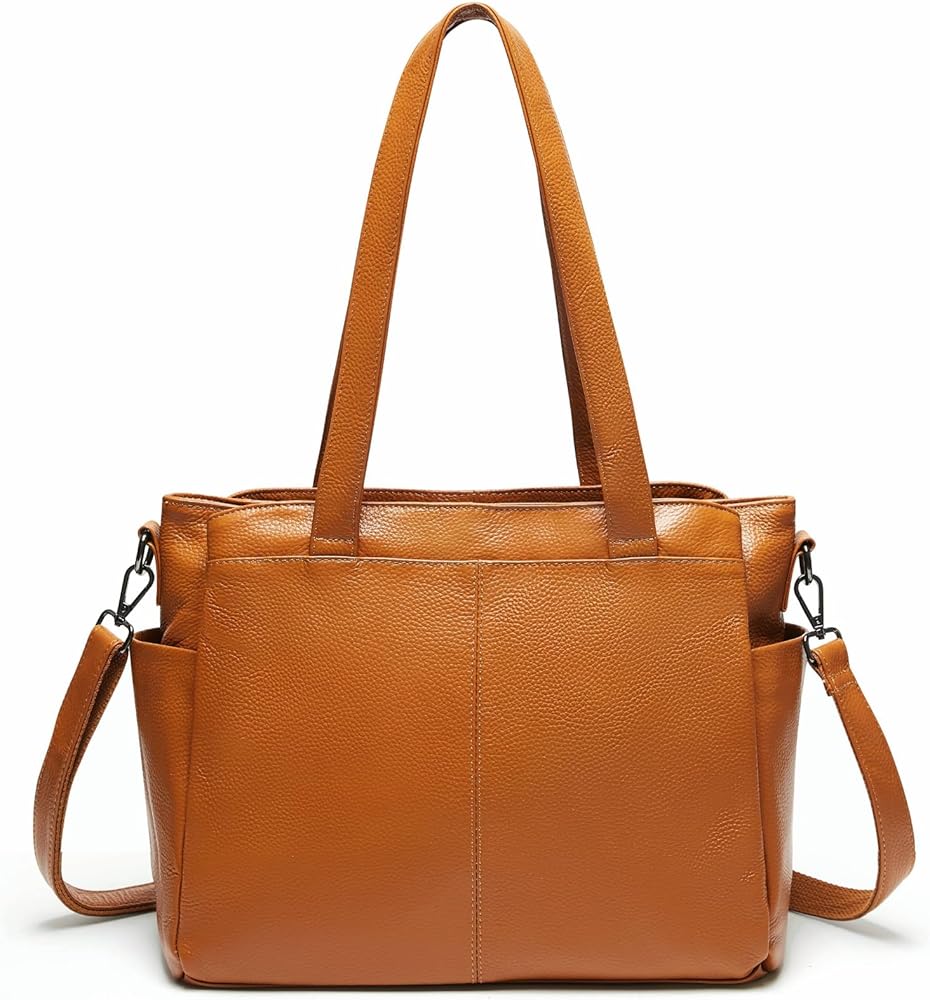 Genuine Leather & Convertible Strap: Crafted from premium genuine leather, this tote bag offers a soft touch and durable structure. The long adjustable strap lets you wear it as a shoulder or crossbody bag for added versatility.