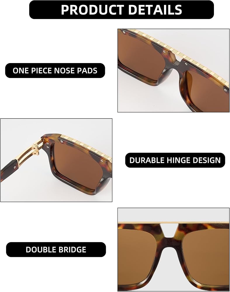STYLISH AVIATOR DESIGN — Retro vintage style sunglasses are keeping up closely with the latest retro fashion trend. The classic double bar square frame can match with various facial shapes. A variety of lens colors can go with different outfits in a daily fashion.