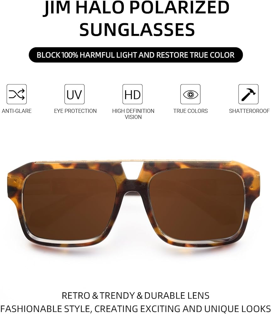 HIGH-QUALITY MATERIALS - These JIM HALO retro aviator sunglasses are made of high quality frame material, UV400 lens, solid metal hinges, all the details ensuring you a long time using.