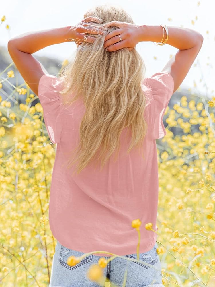 Features - Dressy tops for women, sexy casual v neck blouse, short sleeve shirts for ladies, blouses for women fashion 2025, womens tops and blouses, white blouse for women, embroidered shirts for women, business tops for women work office, casual flowy shirts for women, womens work tops, spring summer fall tops. The ruffle short sleeve shirt for women can make you look more chic, stylish and sexy.