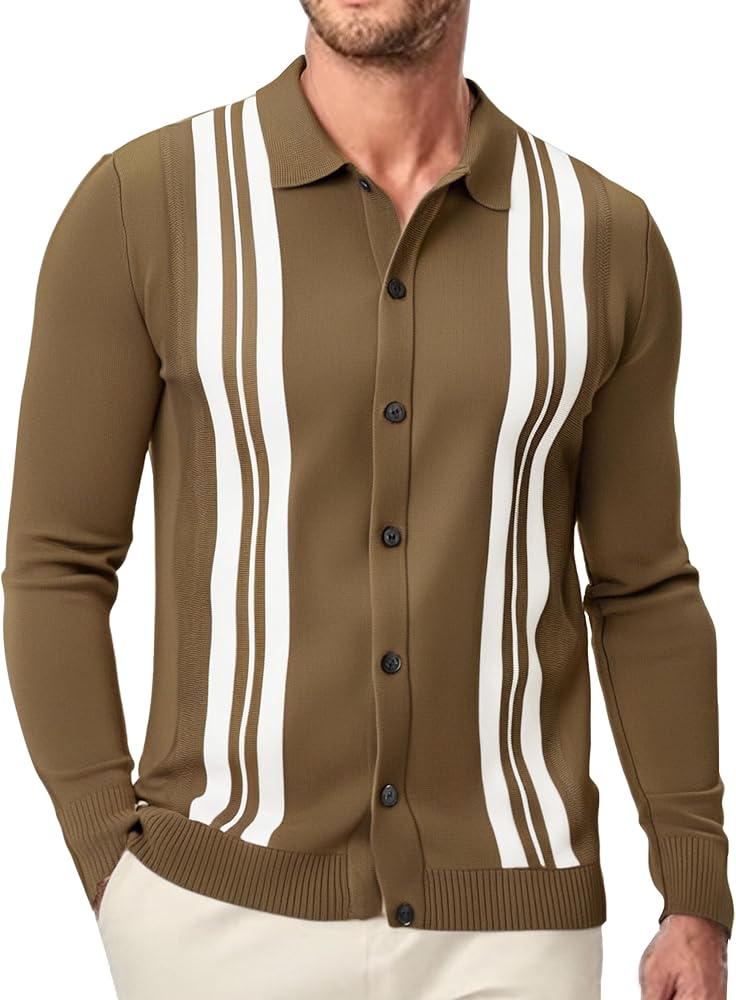 Classic Design: Mens button down shirts long sleeve features eye-catching stripes with contrast.The classic button down keeps your neat and tidy. Ribbed cuffs and hem are making it far more fashionable than a basic polo and perfect for spicing up your everyday look.