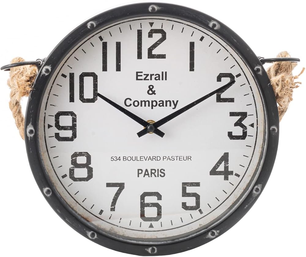 10 Inch Metal Retro Country Silent Wall Clock Battery Operated Hand Made Farmhouse Clock Rustic Chic Shabby Clock with Rope Hanging Decorative for Living Room/Kitchen/Bedroom/Bathroom Black