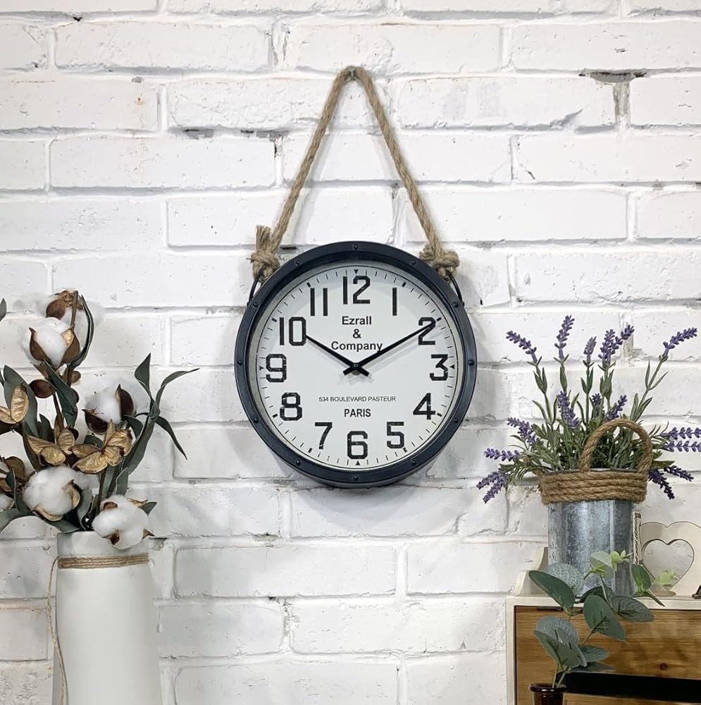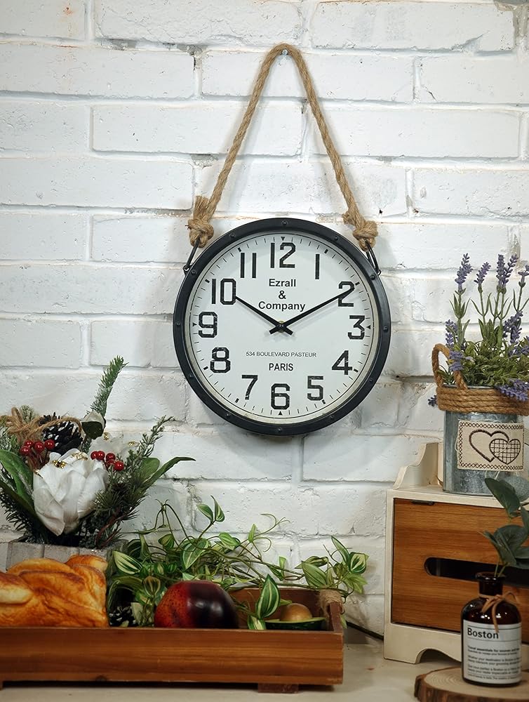 🕘 UNIQUE DECORATION — This is the perfect size vintage wall clock with twine. Show your taste anywhere. Adds to the beauty of your room. Perfect for kitchen, bedroom, living room, school office, farmhouse, loft, cafe, bar, restaurant and hallway.