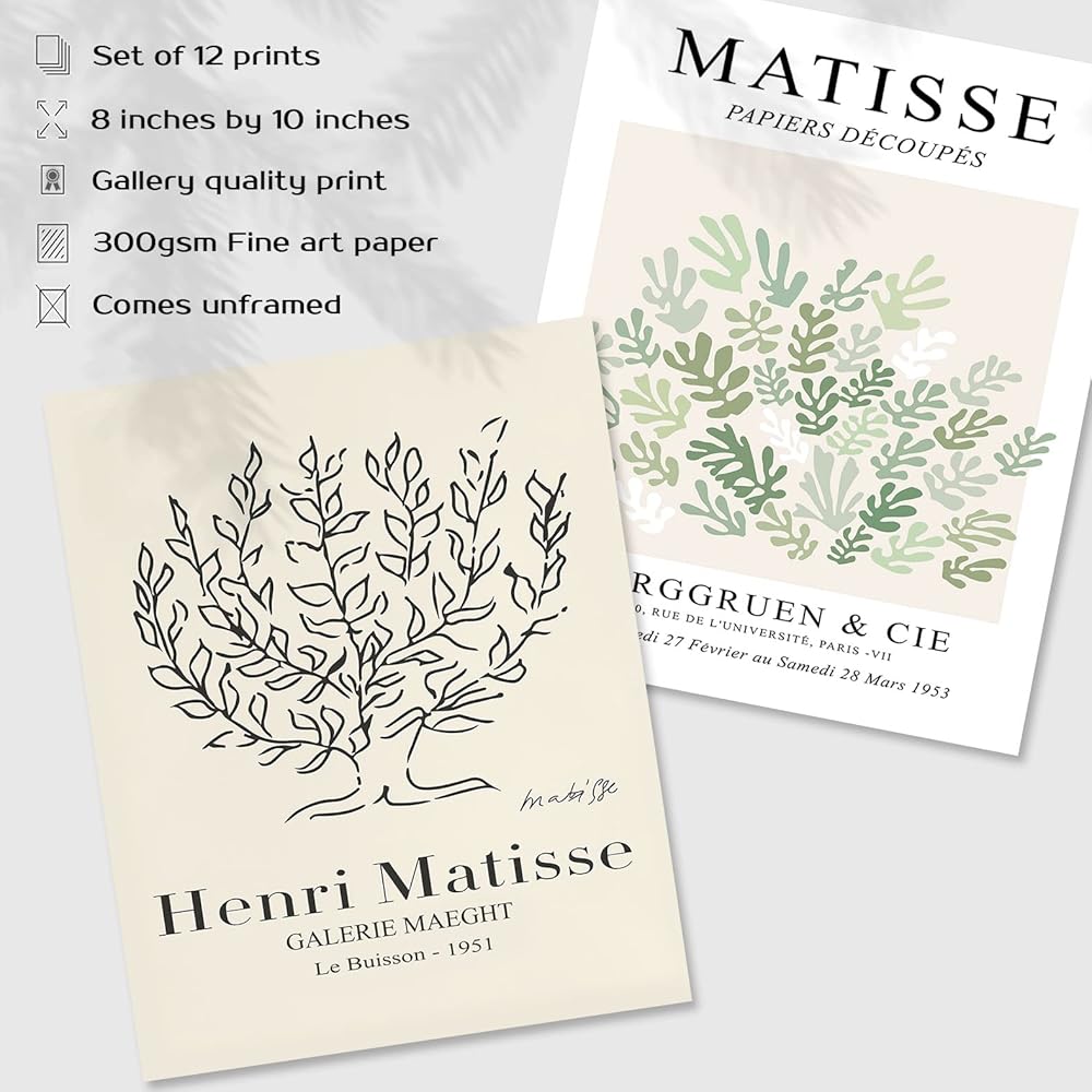 Danish Pastel Room Decor - Set of 12 PCS Matisse Posters, 8 x 10 inch, Printed on Cardstock which Features a Range of Danish Pastel Themed Pictures which can be Created A Customized Stylish Photo Wall.