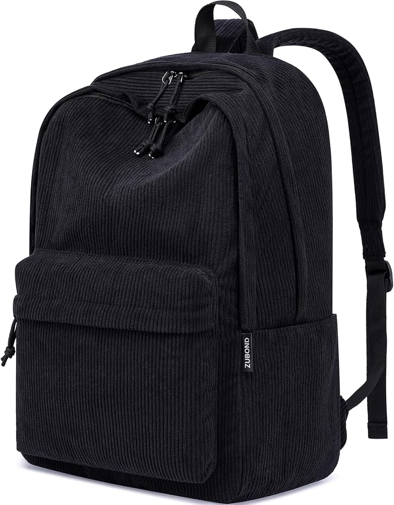 Spacious Corduroy Backpack for School & College: Perfectly sized (17.5”x12”x7.5”) to fit a 15.6” laptop, textbooks, binders, and daily essentials—ideal for middle school, high school, college students, and professionals.Roomy main compartment with a dedicated padded laptop sleeve for secure storage.