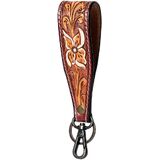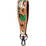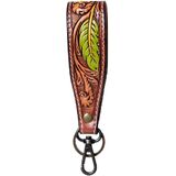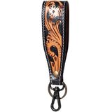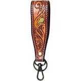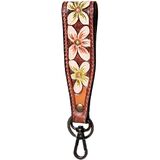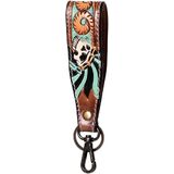 PREMIUM QUALITY MATERIALS-: This is an American Darling wristlet strap keychain that is made with a detailed Western theme Hand tooled, carved, and painted Eco-friendly vegetable-tanned American Genuine Cowhide Leather with a strong metal buckle, the bag strap has a strong lock and durable solid antique finish metal fittings. The wristlet strap with a metal buckle is very sturdy and looks PREMIUM. The exquisite and practical short strap that can free your hands is size 1.5 X 11.
