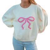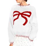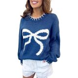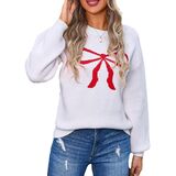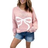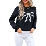 CASUAL DESIGN: Cute bow print, round neck, long sleeves, winter sweaters for women, sweaters for teens, pullover sweaters for women, cute sweaters for women, stylish and cozy, perfect addition to your fall closet