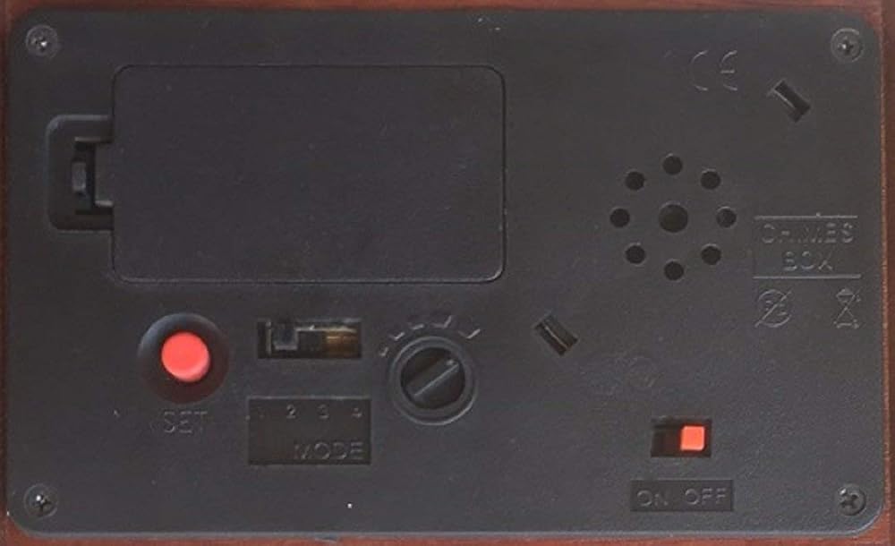Quartz Clock & Chime Has Automatic Shut-off: It is quartz clock and required 3 batteries (not included). It has automatic shut-off between 10 PM to 5 AM. Chime box with on/off switch and volume control.