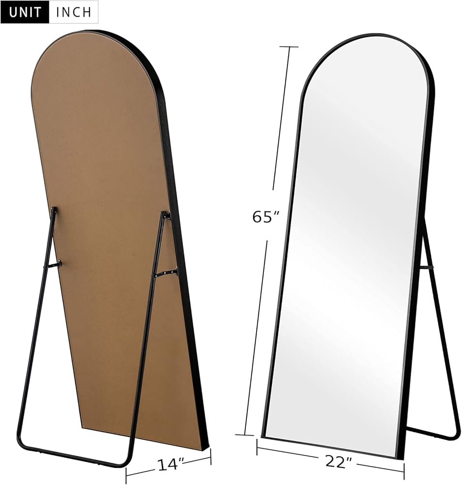 UNIQUE ARCHED DESIGN - The top of the mirror is designed with a seamless arched top frame, like a door. The design will be the most eye-catching in your room. It's not only a full length dressing mirror but also an ornament.
