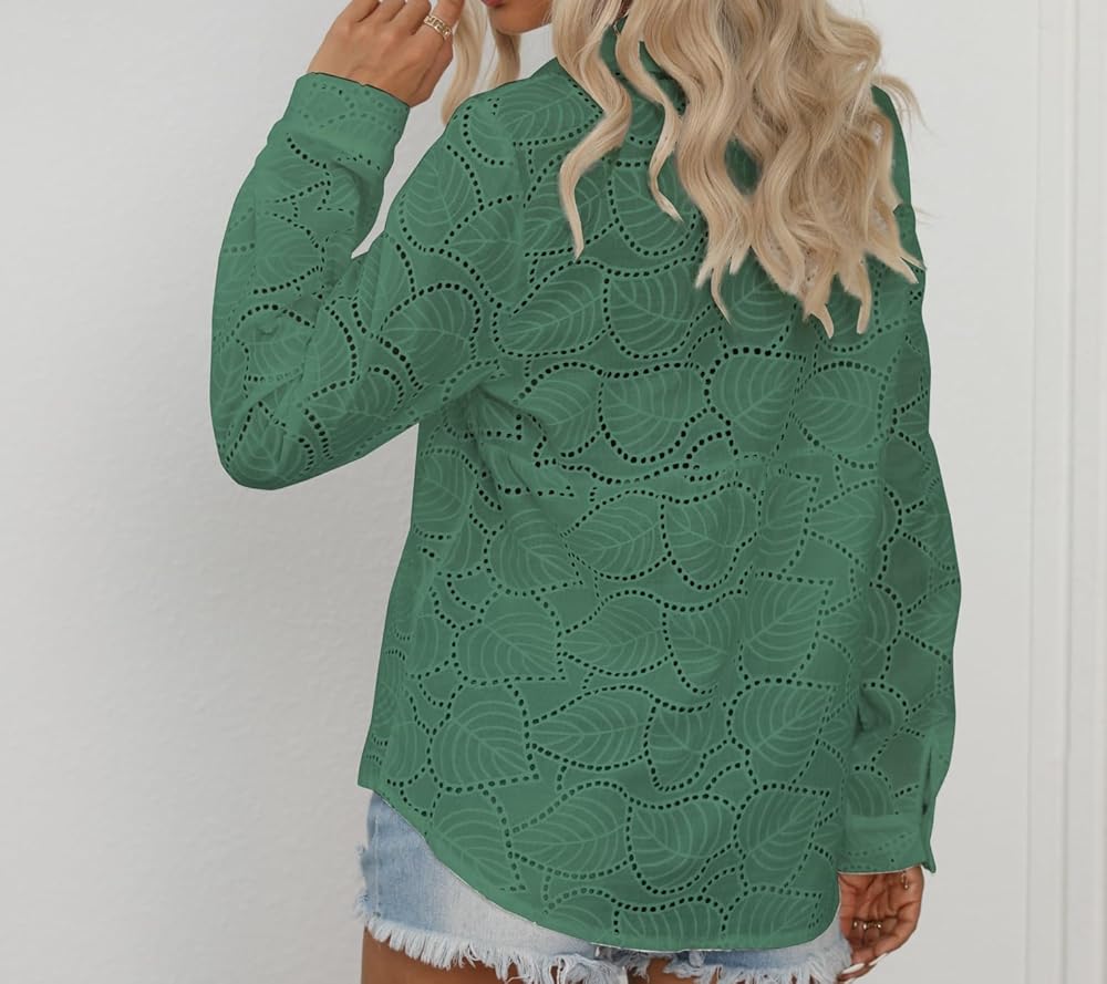 Style and Match:Elegant Button Up Shirt,Oversized Shirt,Bussiness Casual Buttons,blusas elegantes para mujer,Dressy Casual Blouse,Boho Style,Eyelet Shirt//The Shirt Can Match With Jeans,Pants,Shorts ,Skirts,Dresses---Maybe It is All-Match of All-Season.