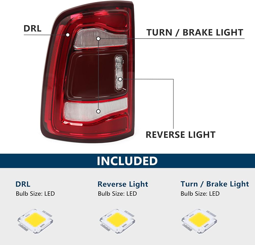 COMPATIBILITY:KACHIR tail lights are compatible with Dodge Ram 2500 3500 (2019 2020 2021 2022 2023). LED model only without blind spot.Replacement for OE: 68361717AD . Please check the vehicle fitment before purchasing.