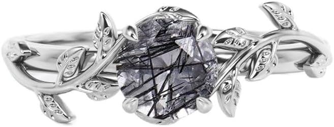 Black Rutilated Quartz Engagement Ring for Women 925 Sterling Silver 10K/14K/18K Gold 1CT Black Rutilated Quartz Wedding Ring Vintage Art Deco Anniversary Promise Ring for Her