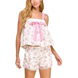 Features:Women y2k striped print pajama outfits, ruffle hem tank top and shorts, loose fit wide leg pajama shorts, elastic high waist pajama shorts, loose fit pajama outfits, graffiti print pajama set, wide strap tank tops, cute graphic pajama outfits