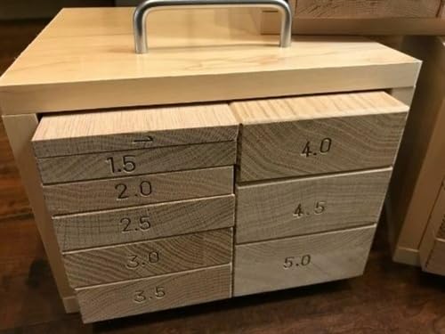 Includes nine wooden blocks, graded by half centimeters, from 1 cm to 5 cm.
