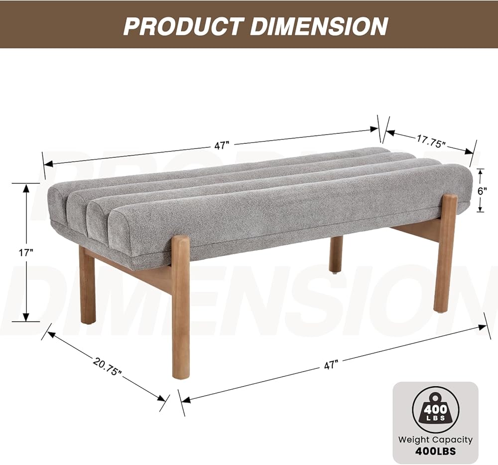 Versatile Use: 47" wide, perfectly sized for the end of the bed, it is also ideal as an accent piece in living rooms, entryways, or dressing areas