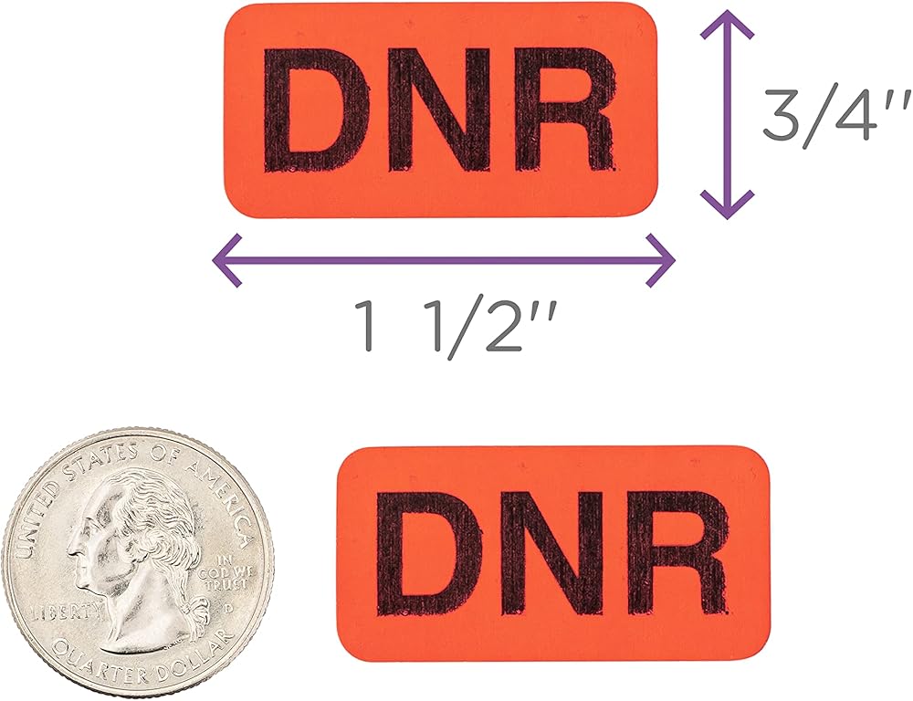SPECIFICS: Color – Red and Black, Size – W1.5" x H.75", Text – DNR