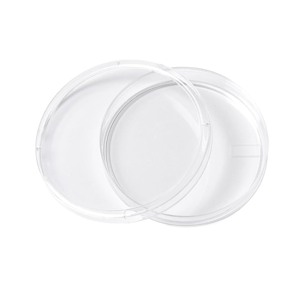 Non-treated, optically clear petri dishes molded from medical-grade virgin polystyrene for general microbiological use