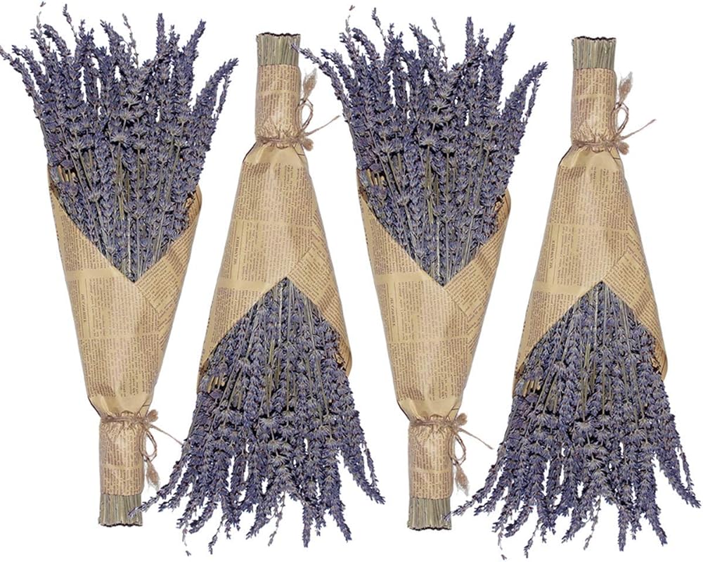 Cedar Space Lavender Dried Flowers 4 Bunches Dried Lavender Ideal Home Fragrance Products for Home Decorations, Wedding, Party, Photography & Flower Arrangements, Total Length 16 Inches