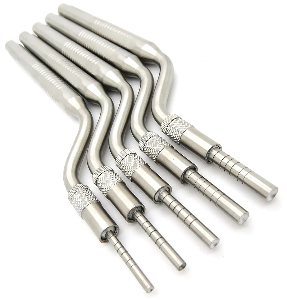 5 Piece Dental Osteotomes Concave Set Includes: 2.6mm Osteotome used to carry and place bone grafting material into site of the elevated sinus floor. 3.1mm Osteotome used to condense bone material under the sinus. 3.8mm Osteotome used to carry and place bone grafting material into site of the elevated sinus floor. 4.5mm Osteotome used for lateral bone condensation for elevation of the sinus floor. The angle assists with posterior access. 5.0mm Osteotome used for lateral bone condensation for elevation of the sinus floor. The angle assists with posterior access.