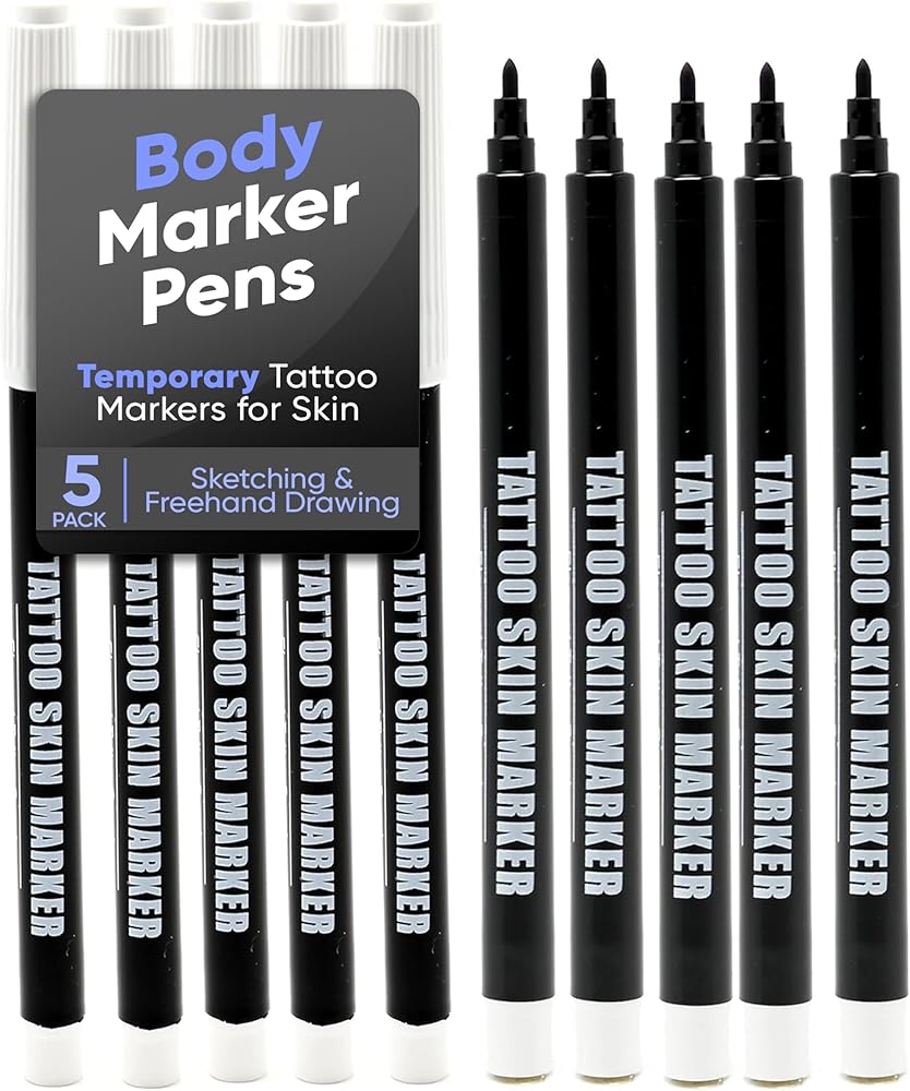 BODY SAFE MARKERS FOR SKIN: Crafted with care, our skin pens for tattooing are non-toxic and safe to use directly on the skin. You can confidently use these skin safe markers for temporary designs, knowing they're suitable for all skin types.