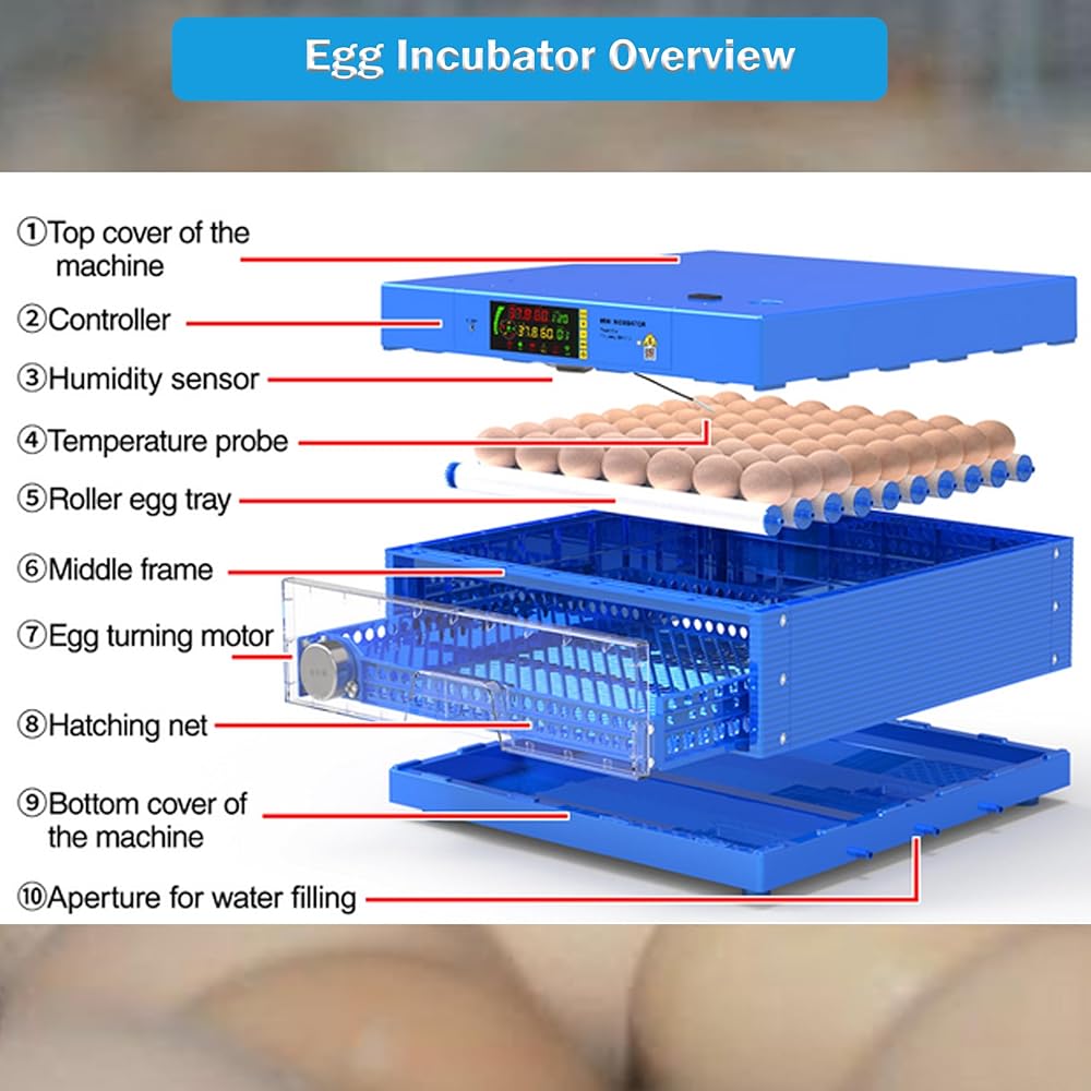 • 🐣【Temperature and Humidity Display】 Multi-functional LCD screen, temperature and humidity can be viewed in real time, and the incubation situation can be seen at a glance.