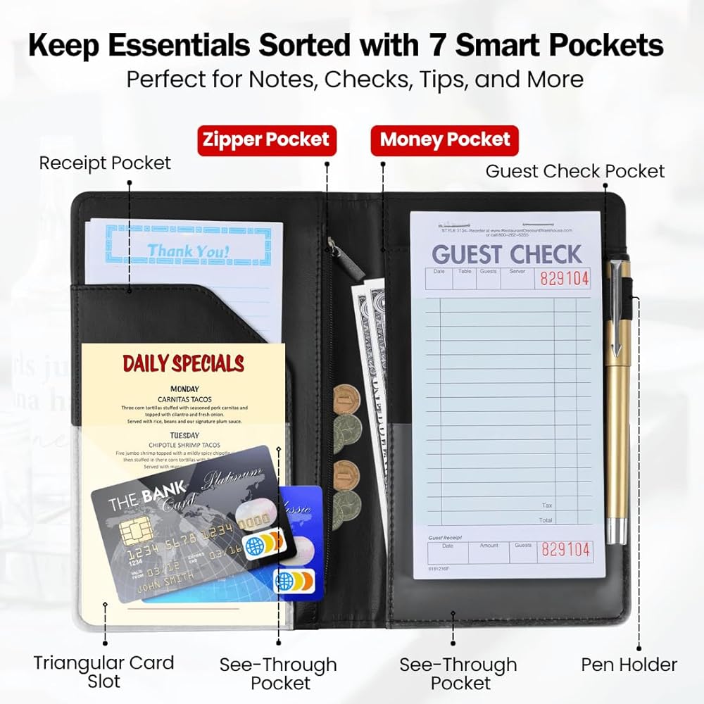 Perfect for Everyday Service: Provides a dependable tool trusted by restaurant staff in fast-paced environments—helping streamline orders, tips, and guest checks with confidence. Solves common stress points during service with smooth usability and clean layout. Ideal for small server book, server accessories for waitress, waitress server book, and server checkbook. For any issues, feel free to reach out