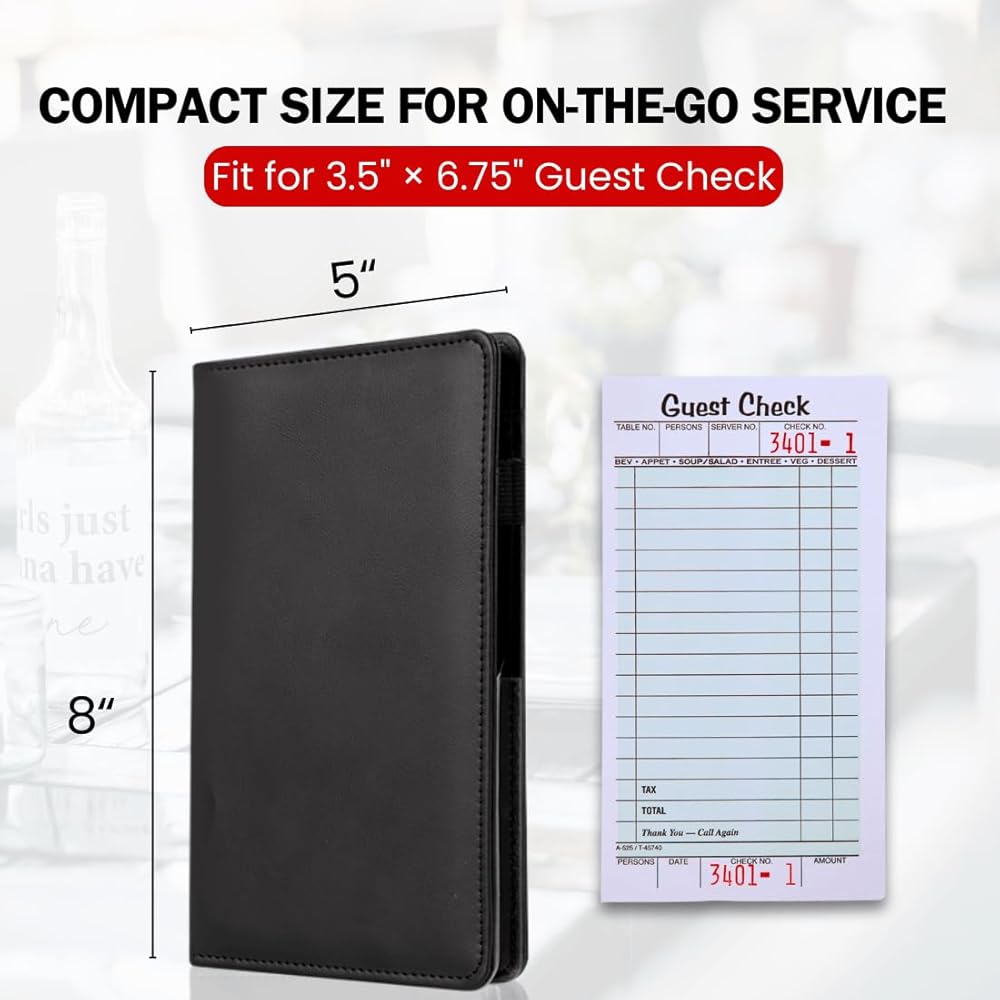 Compact Size, Perfect Fit: Provides a slim, lightweight form that fits easily into apron pockets and pairs perfectly with 3.5" × 6.75" guest checks. Solves bulk and portability issues, helping you move freely during service. Ideal for cute server books for waitress, server wallet, server books for waitress cute, and a practical waiter wallet