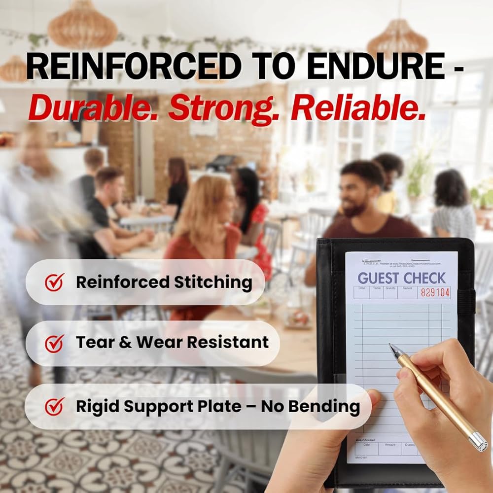 Reinforced Design That Lasts: Crafted with tear-resistant PU leather, reinforced stitching, and a rigid support plate that prevents bending, this server book is built for long-term durability and daily use. Whether you're serving tables during a busy shift or moving fast on your feet, it holds up without peeling or warping. Perfect for anyone needing reliable server books for waitress, waitress book, serving book, and waitress books for servers