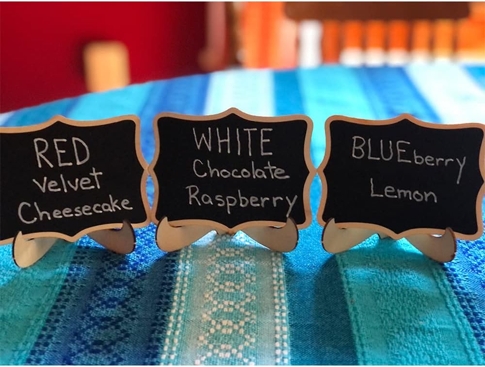 This mini chalkboard sign is just the perfect size for labeling foods, drinks at a party or buffet etc., Great for a candy bar or dessert table for wedding, graduation or other party decoration