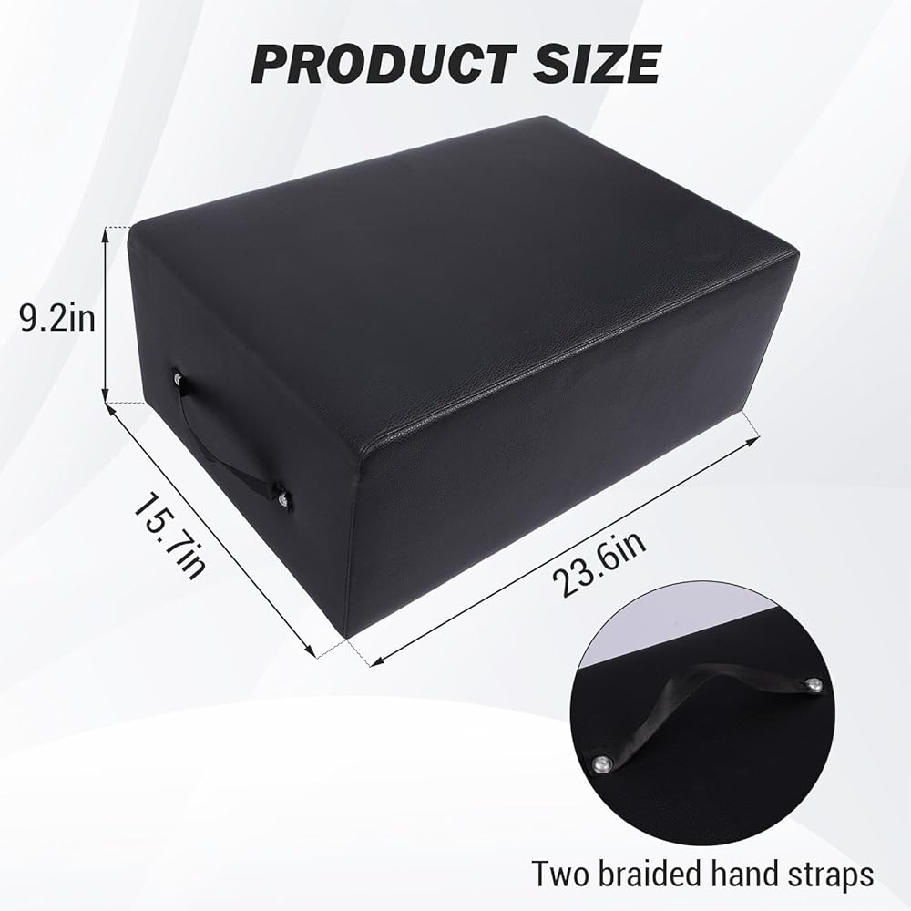 SOLID CONSTRUCTION:Constructed from high-quality materials, the Pilates box is both sturdy and safe. Its smooth, edge-free surface prevents scratches and bumps, ensuring comfort and safety during use.Great at-home pilates or step/jump box! It can support you large body and is comfortable to lay on. It has handles that makes it easy to carry around.