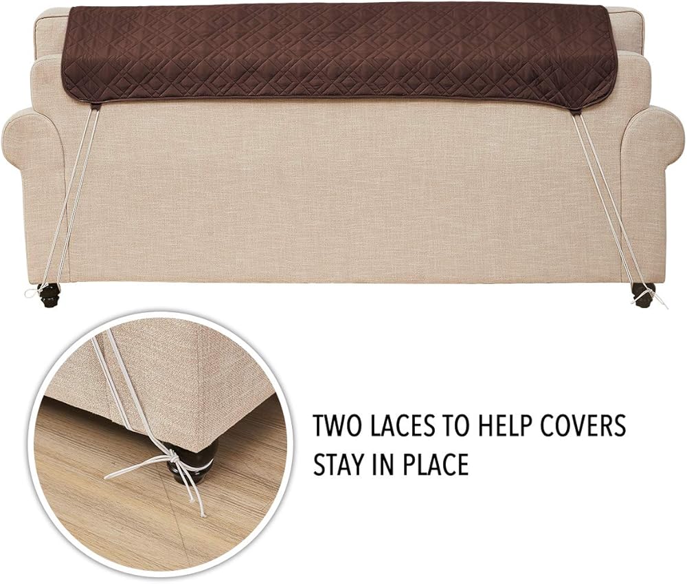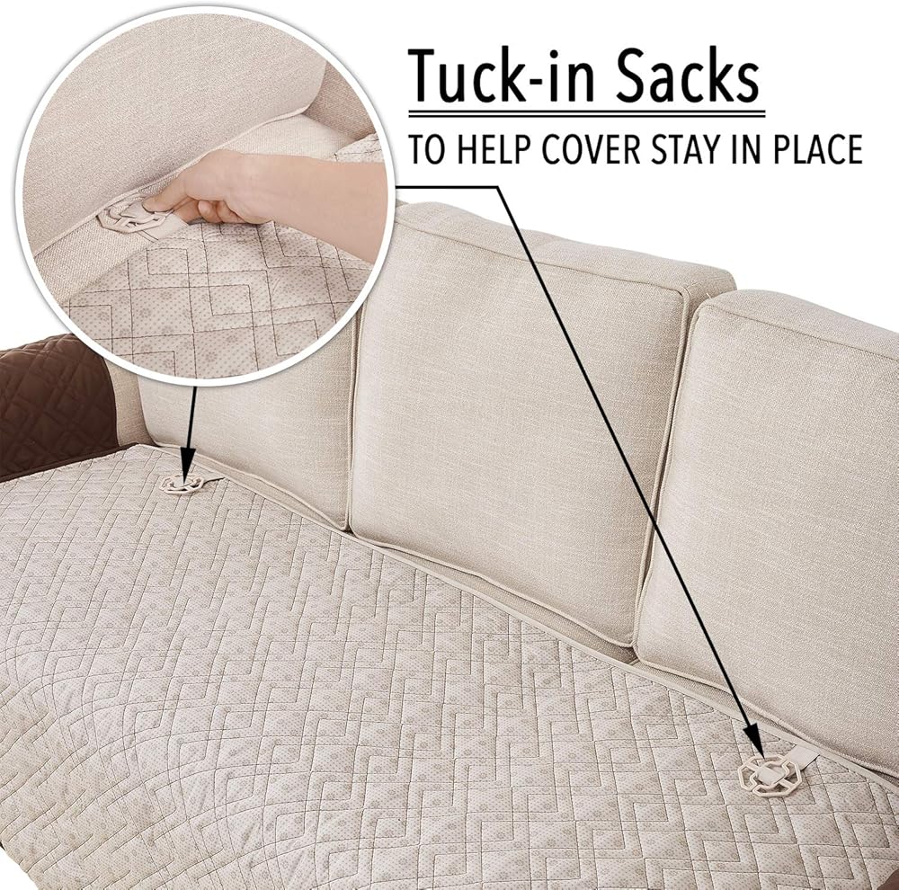 STAYS IN PLACE: No More Slipping Around! Works for LEATHER sofa! 1,Features silicon rubber dot design on back; 2,The round Anti-slip buckles at the seam of the cover into the groove between seat and back, prevent the sofa cover sliding around.;3, Two extra wide strings on the back of sofa cover, which tied to the sofa legs to help keep in place.