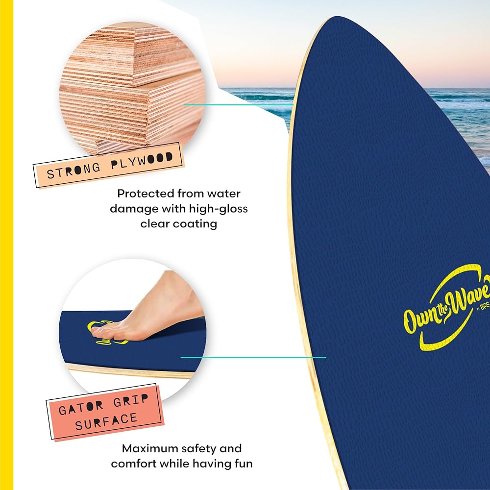 EASY TO CARRY AND LIGHTWEIGHT 🌟 The Own the Wave skimboards are designed with portability in mind, ensuring they are lightweight and easy to carry. Whether you are a beginner or an experienced skimmer, you'll appreciate the convenience of transporting your board to and from the beach effortlessly. Enjoy more time skimming and less time struggling with heavy gear!