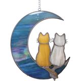 Sensory4U Mushroom Moon Stained Glass Suncatcher - Earth Tone Modern Window Hanging Wall Art - Home Decor or Garden Suncatcher for Natural Light Reflection