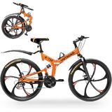 Outroad 26 Inch Folding Mountain Bike, 21 Speed Full Suspension High-Carbon Steel MTB Foldable Bicycle, Dual Disc Brake Non-Slip Folding Bikes for Adults/Men/Women, Black, Orange and Green