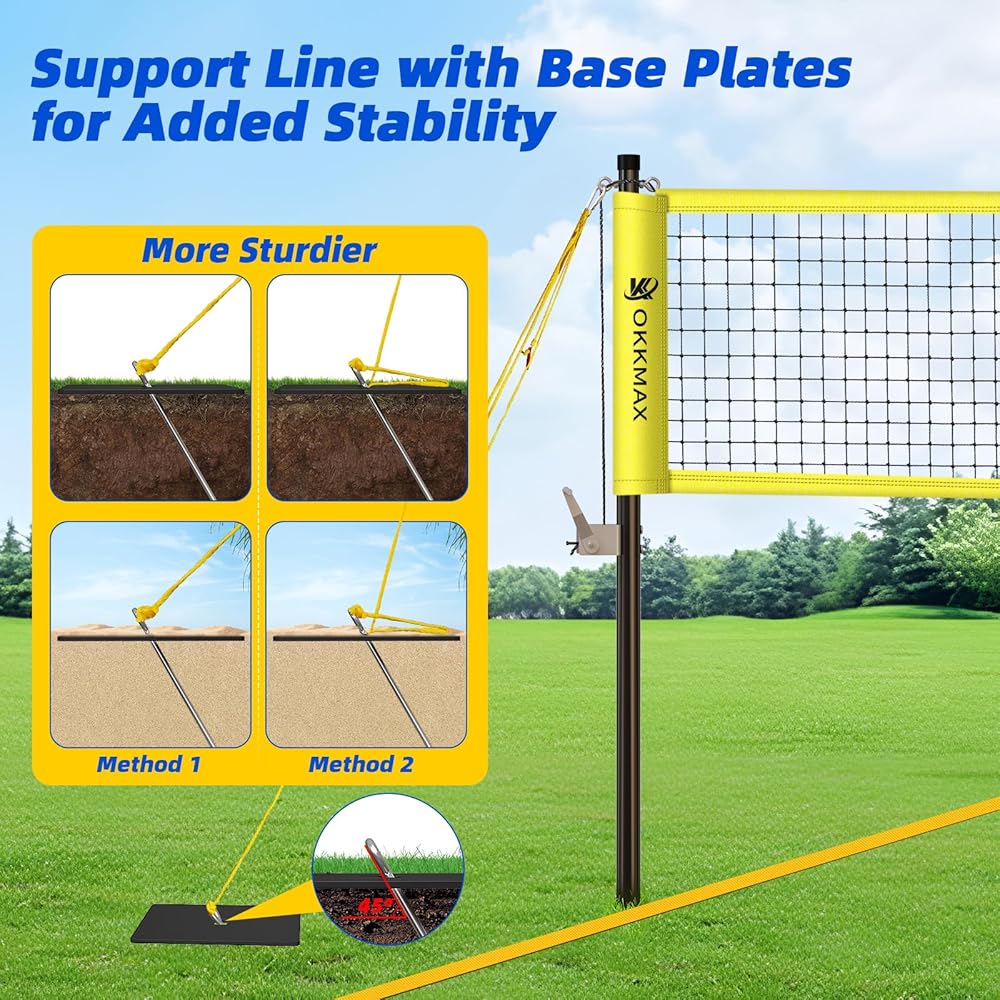 【Fixed Plates for Added Stability】Our beach volleyball net is added with 4 fixed plates for guide ropes, using it on the beach or looser land can increase the stability and prevent it from being blown over by the wind, allowing you to enjoy your game time for a long time. The volleyball net outdoor are also equipped with scoreboards to increase the sense of competitive game experience.
