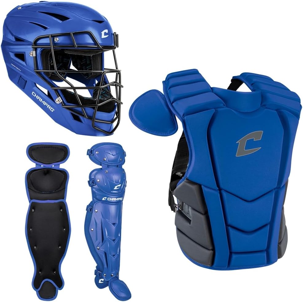 A collection of all the protective equipment catchers need to get behind the plate. Includes the Cannon Catcher's Helmet, Optimus Select Plus Chest Protector, and Optimus MVP Leg Guards