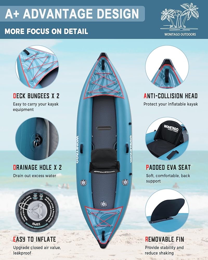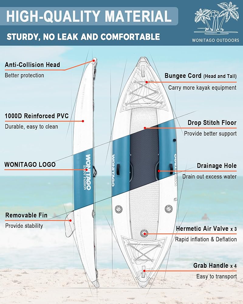 MUST HAVE FOR OUTDOOR ENTHUSIASTS ---Choose WONITAO, enjoy a happy journey of water sports with your family, whether you're exploring the coast, racing down a river, or enjoying a peaceful lake, our kayaks are the perfect choice for your next adventure